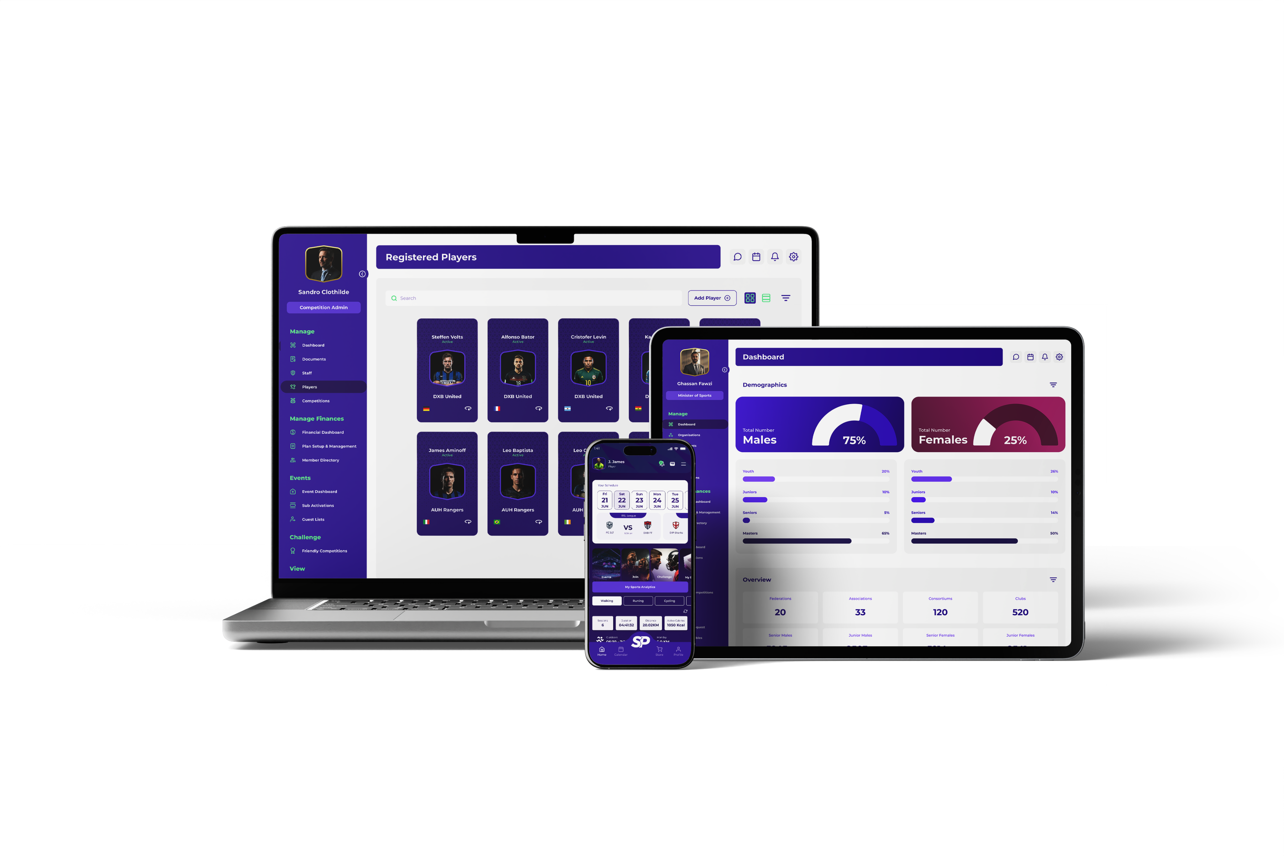 We offer full digital transformation solutions to every level of the sports ecosystem, allowing sports to grow from Government mass participation schemes, down to grassroots, or from Grassroots to schools up-to amateur or professional leagues. Digitally administrate sports, fast and efficiently removing paper from the process.